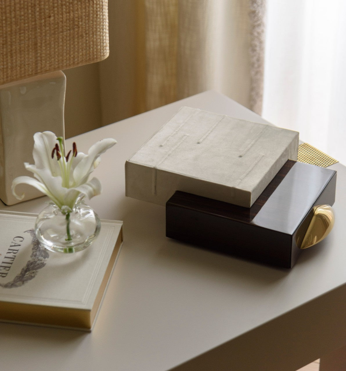 A statement of balance and contrast. This accent piece celebrates duality — two volumes, two materials, one bold harmony.