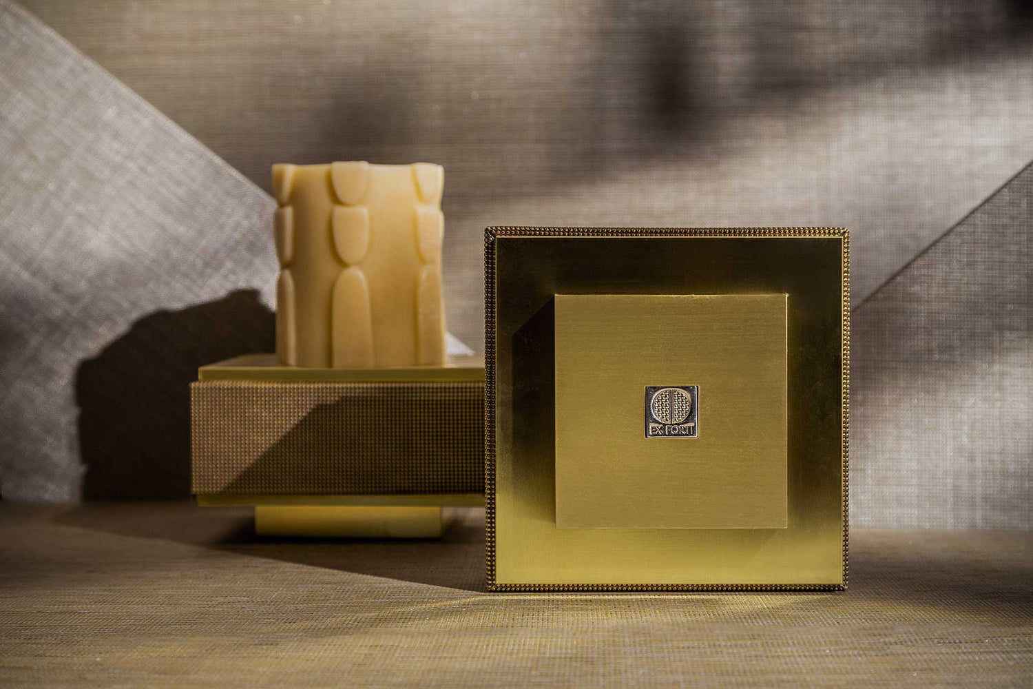 Lazlo is a stunning Candleholder crafted combining the strength of Volumes and the fleeting essence of soft wax. A Brass Base with strict lines and right angles showcases a refined texture, which softens the rigidity of the structure. A deft masterpiece from Italian Craftsmanship, in the name of the Brutalism elegance.