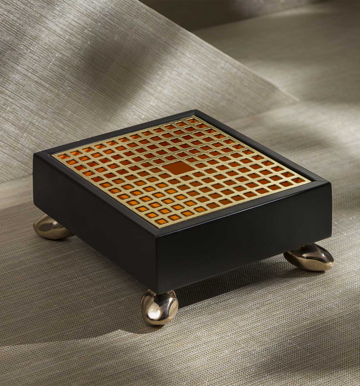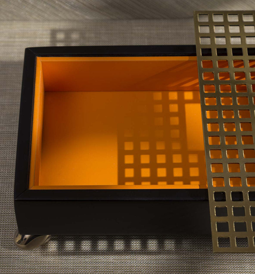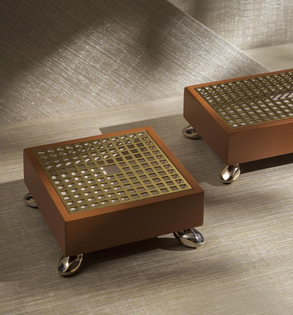 The precious Top consists of a charming Brass mesh, which reinvents the engineering solutions of the Cathedral, transforming its geometric floor grills into a relief texture.