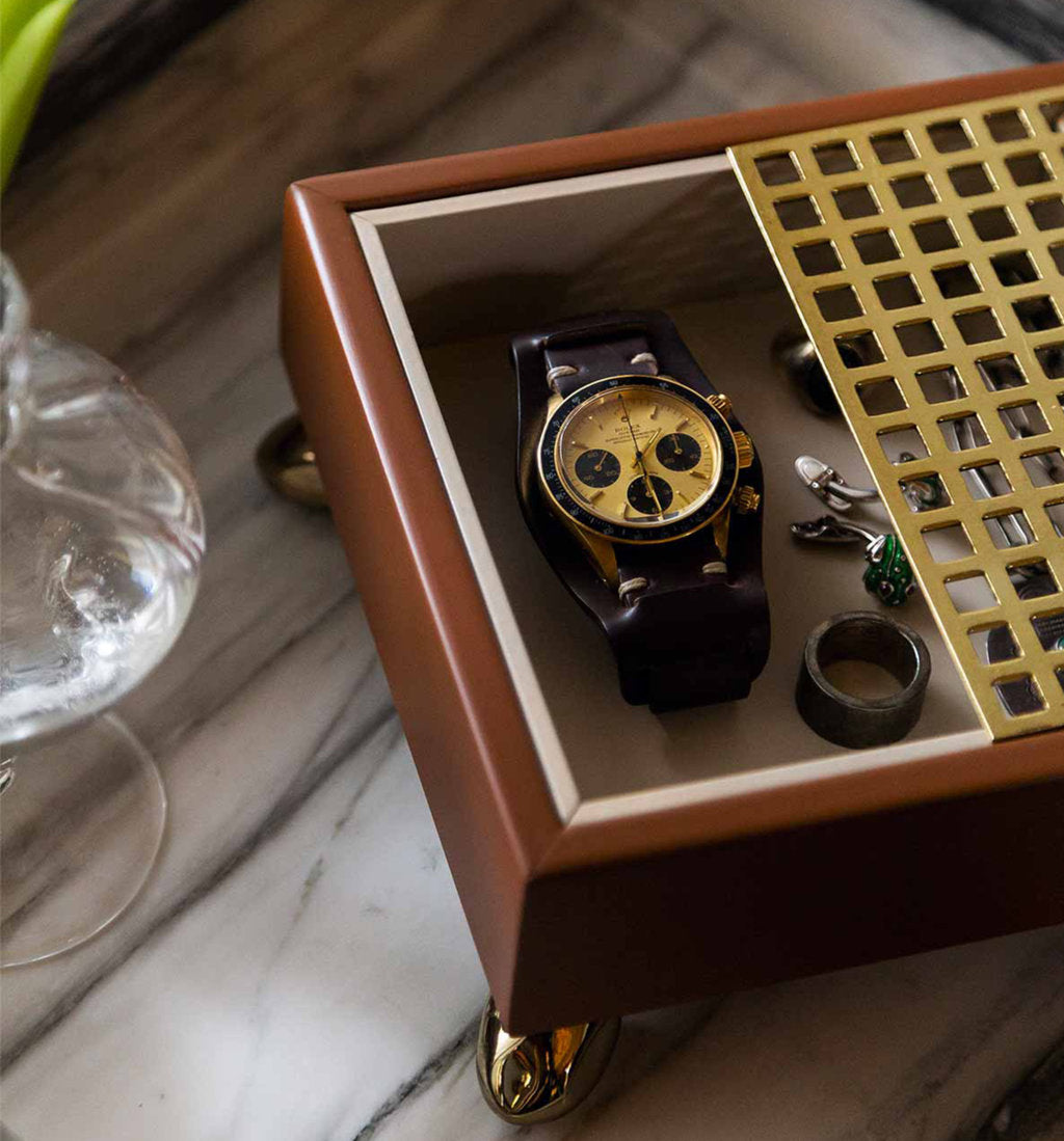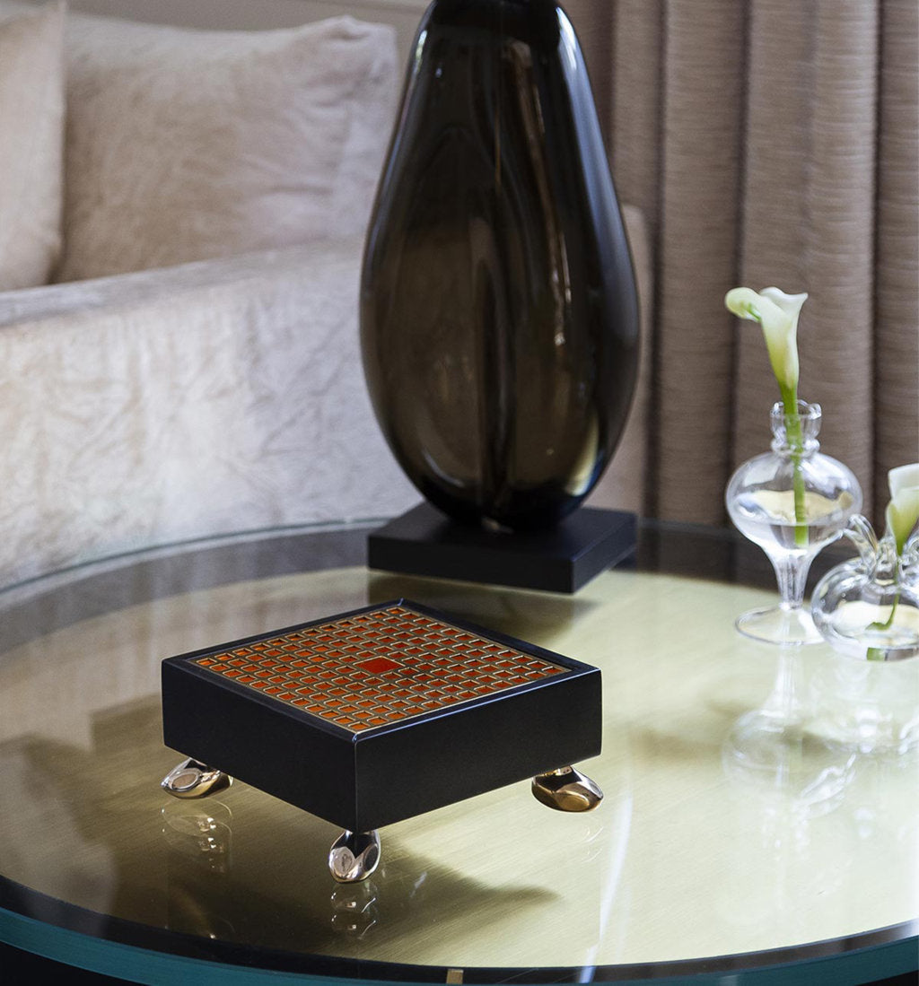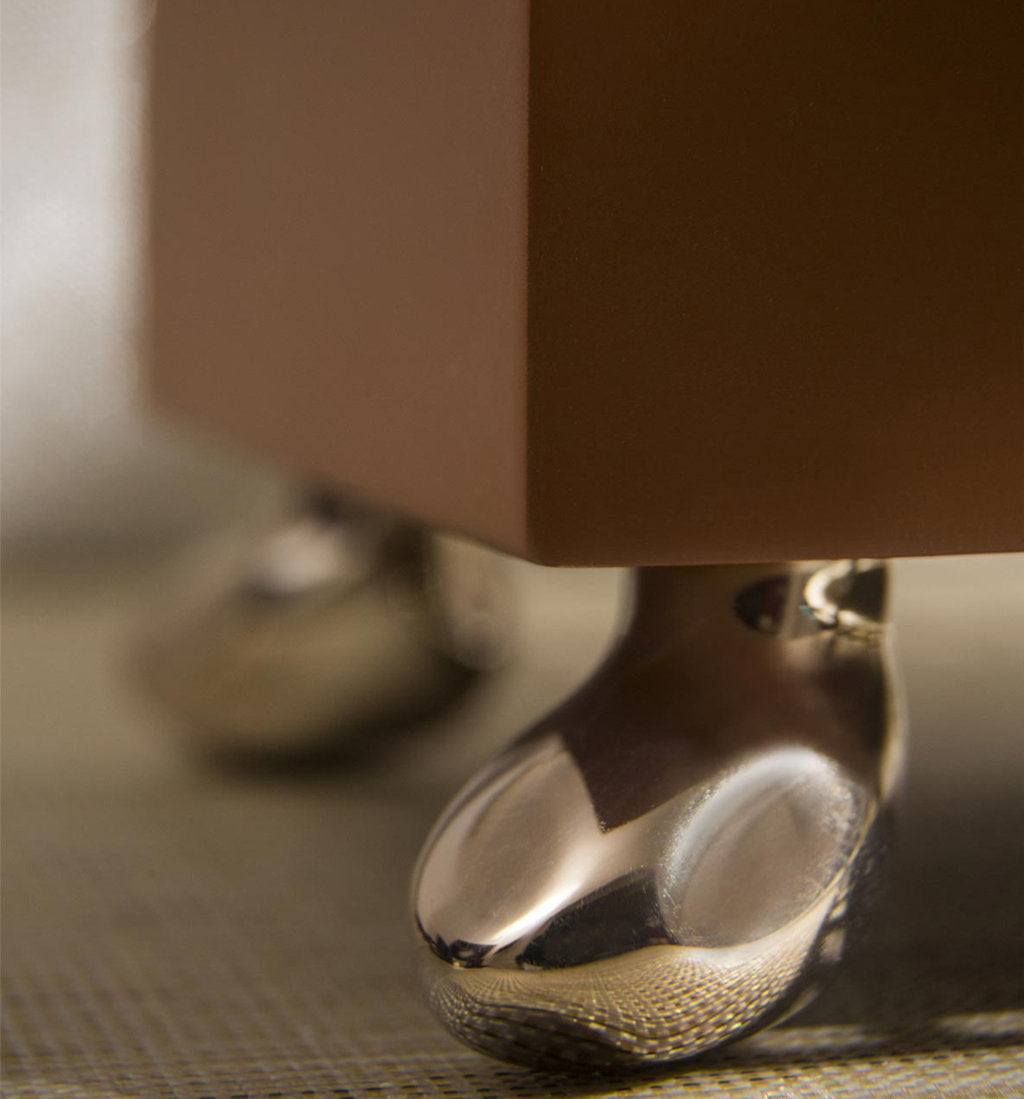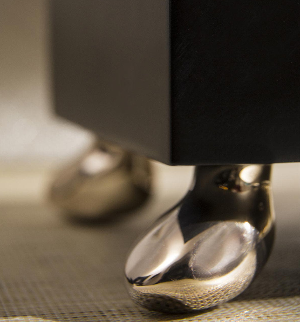 Four dazzling bases support the box, citing the Romanian Sculptor, Constantin Brâncuși and his “The Newborn”: handmade, specially costumed with a brass casting, they are actually real pieces of design, embellishing Limbos with a sculptural look.