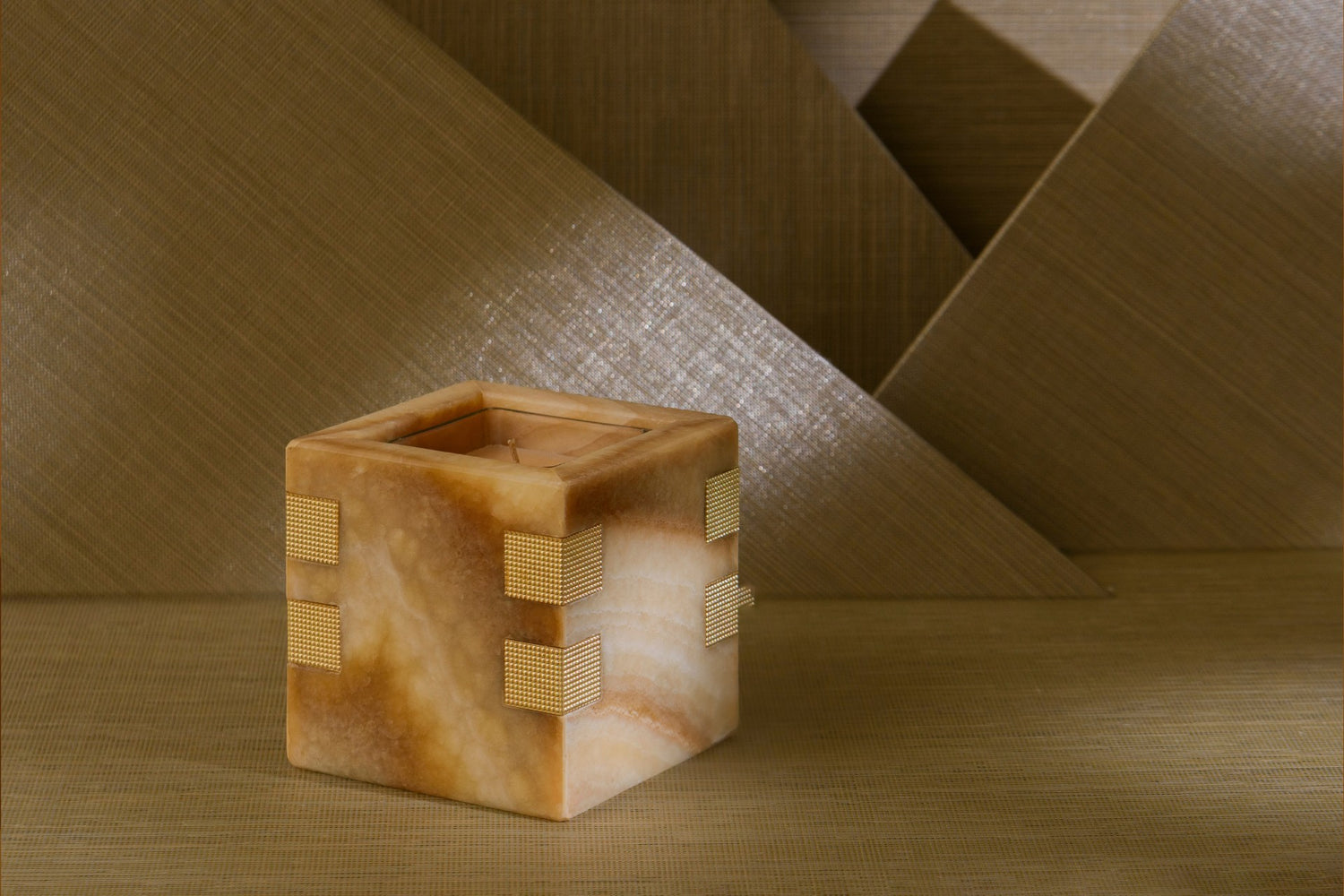 Crafted of exquisite, opalescent onyx, Santiago Candleholder exudes strengths and elegance.